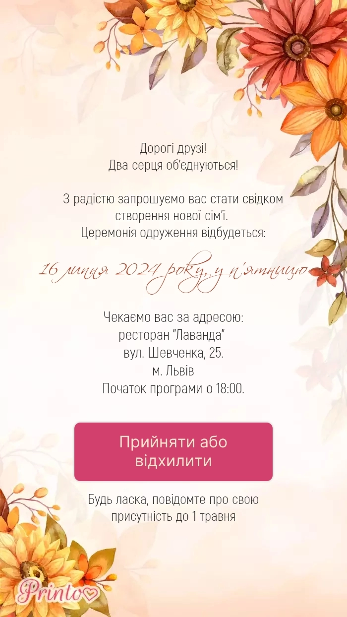 Дизайни включають все необхідне для організації весілля - від цифрових і друкованих запрошень до розсадних карток і меню.
