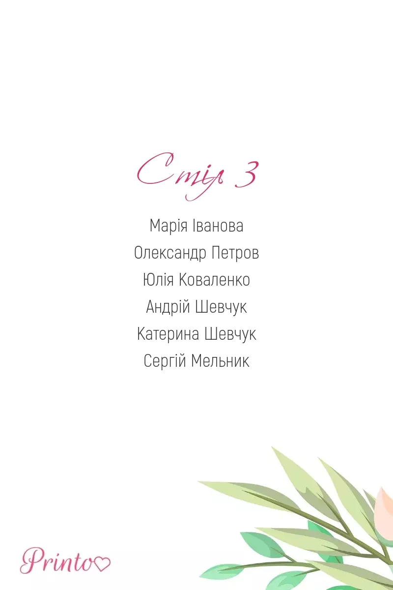 Іменне запрошення для гостей - для кожного запрошення буде автоматично підставлено імена та звернення до гостей.