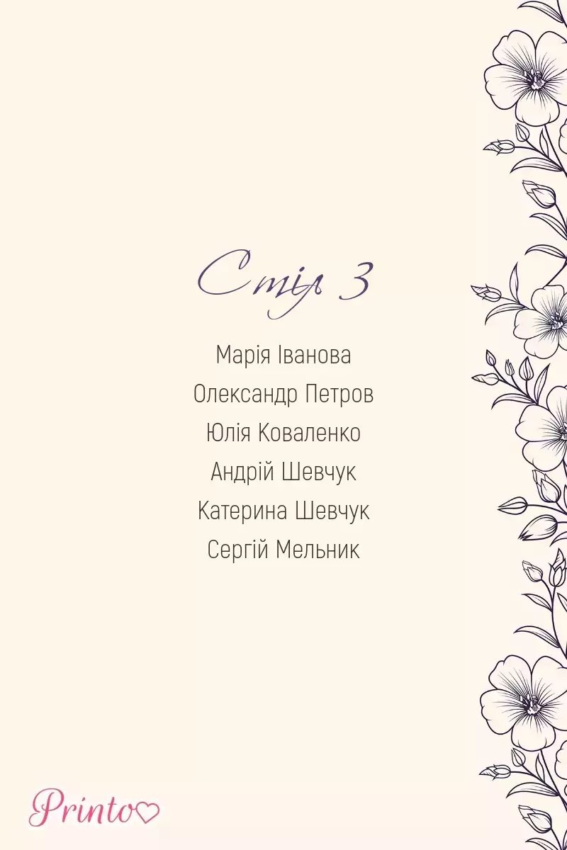 Іменне запрошення для гостей - для кожного запрошення буде автоматично підставлено імена та звернення до гостей.