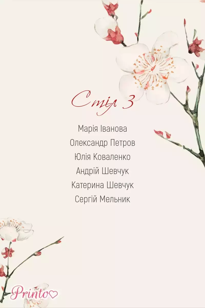 Іменне запрошення для гостей - для кожного запрошення буде автоматично підставлено імена та звернення до гостей.