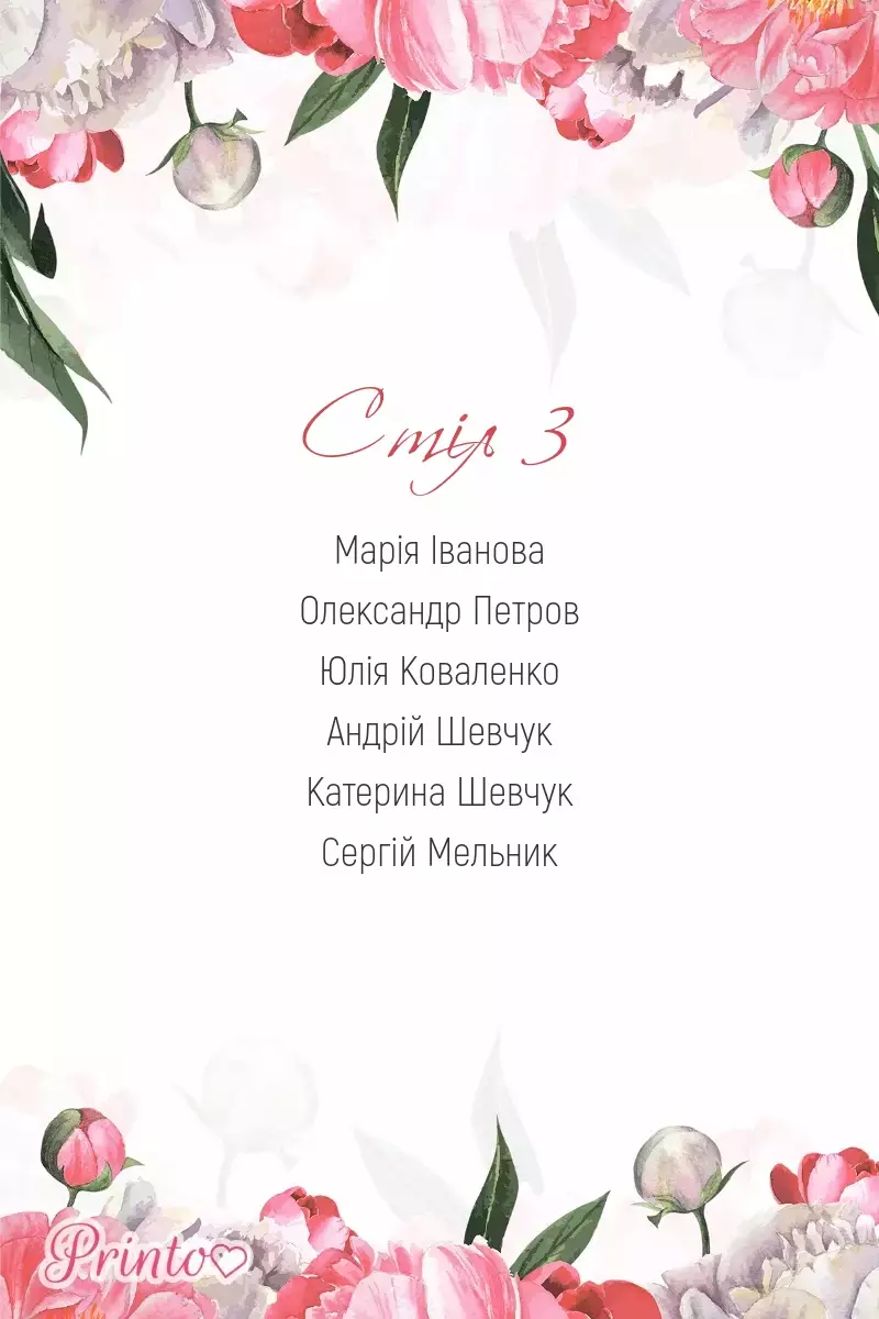 Іменне запрошення для гостей - для кожного запрошення буде автоматично підставлено імена та звернення до гостей.
