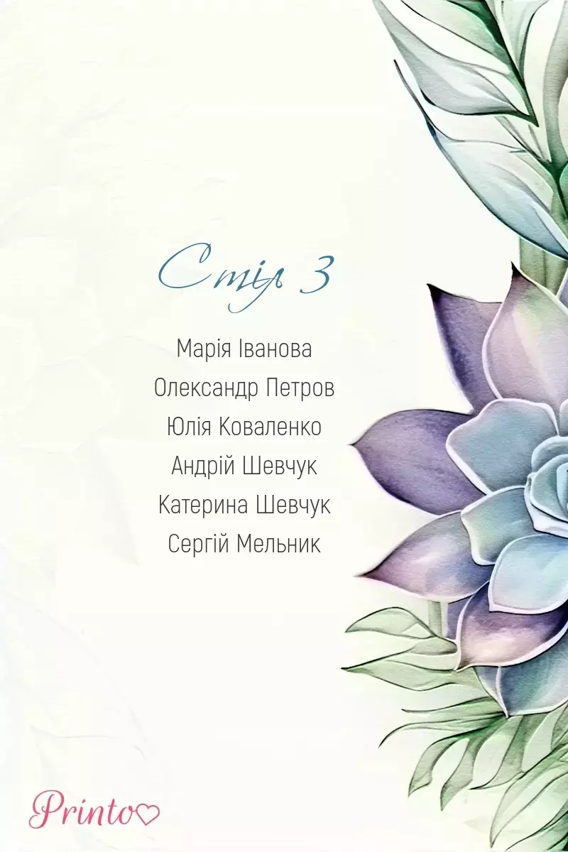 Ці карточки розміщуються на столах і допомагають гостям знайти своє місце. На карточці зазвичай вказується ім'я гостя.