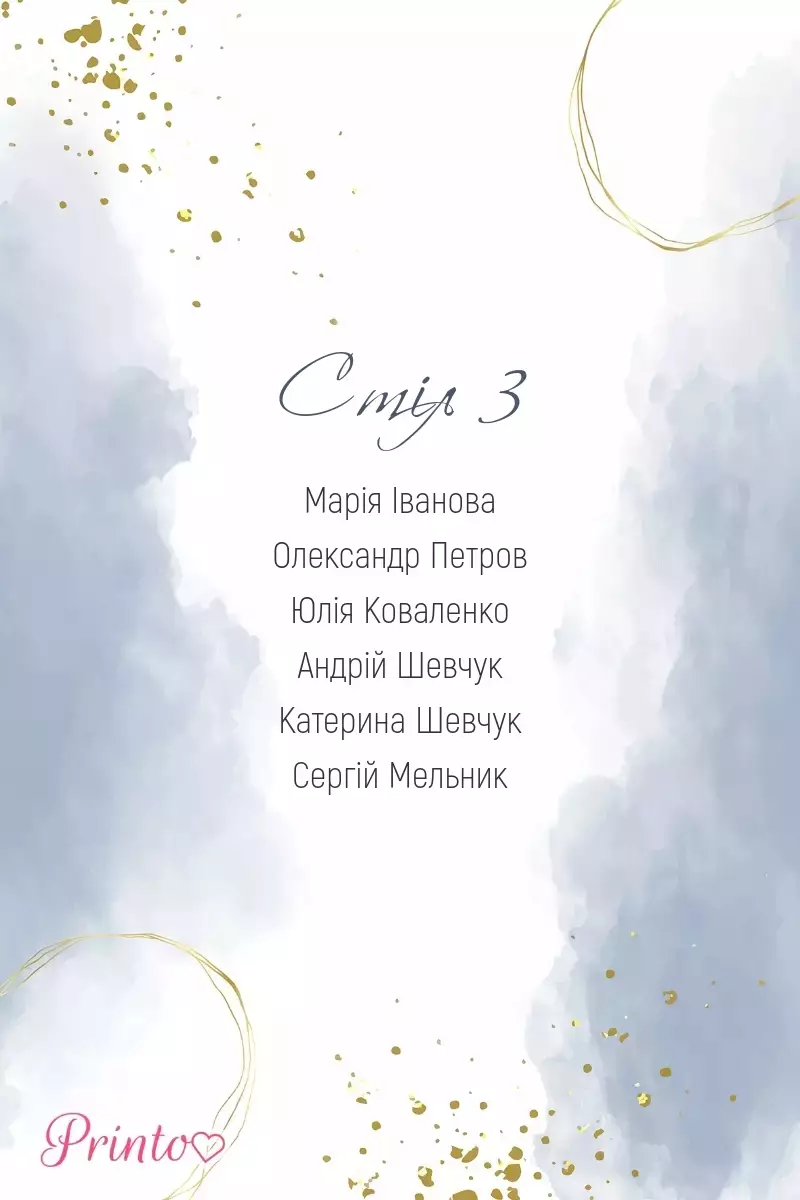 Ці карточки розміщуються на столах і допомагають гостям знайти своє місце. На карточці зазвичай вказується ім'я гостя.
