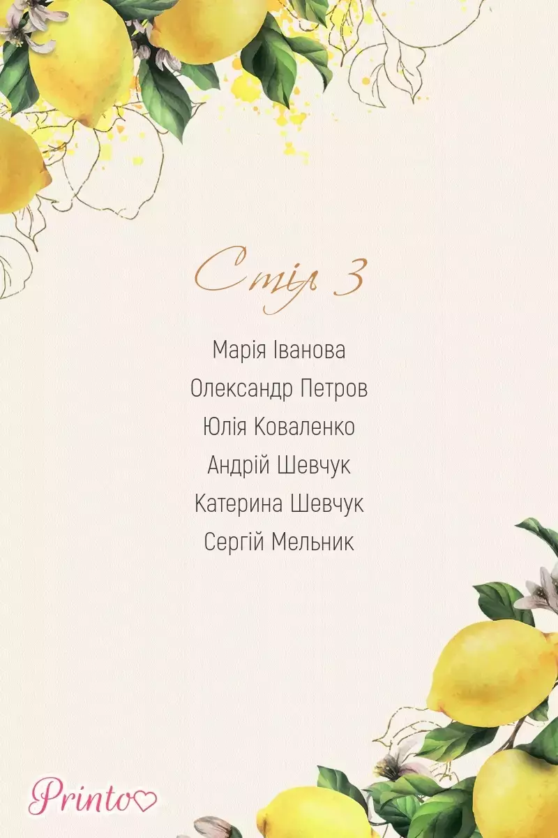 На плані розсадки зазвичай вказують номери столів і імена гостей, які сидять за кожним столом.